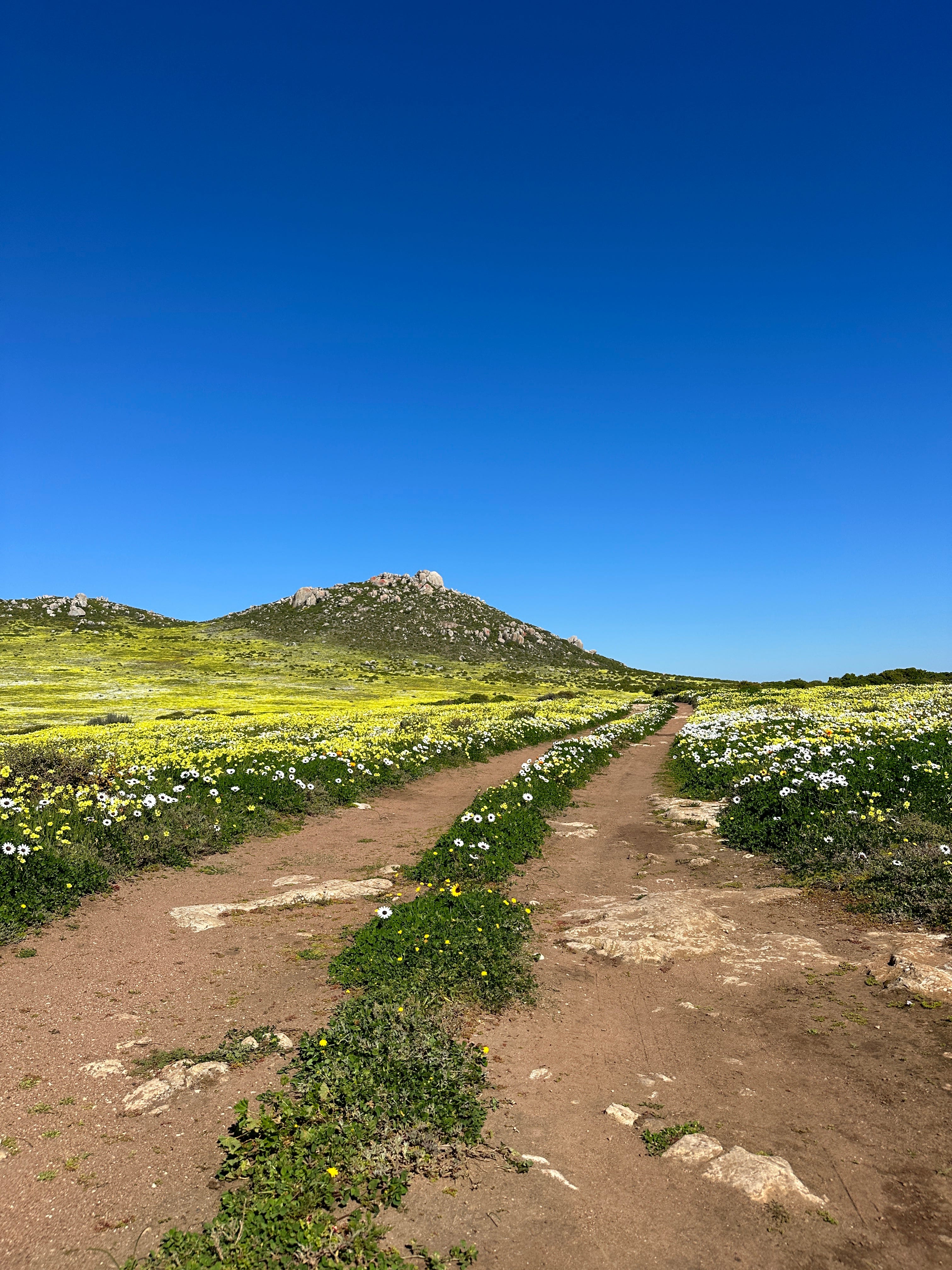 I take myself to the West Coast National Park to walk a 13km trail amongst the Spring wild flowers. I’ve invested in a new pair of hiking boots, two sizes too big so that my Piscean feet don’t feel claustrophic, but needing to be broken in before my 5 week solo trek in Nepal. The weather is dicey, but in between squalls and a wind that ceaselessly tries to pluck my windbreaker from my aching ears, I enjoy the colours, the tortoises, the solitude.